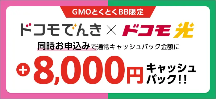 ドコモでんきと同時お申込みで、現金8,000円がキャッシュバックされます。電力会社の切り替えは複雑な手続きや工事が基本的にいりませんので、dポイントが貯まっていくドコモでんきへの切り替えもぜひ検討してください。
